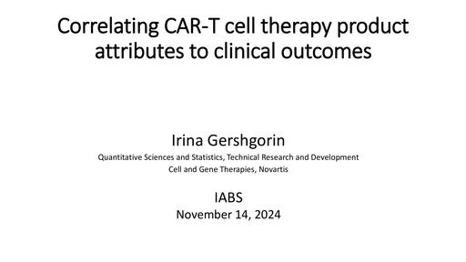 13. 2. Irina GERSHGORIN – A Patient-Centric Approach to Cell Therapy Manufacturing: Linking CAR-T Product Attributes and CQAs to Clinical Outcomes