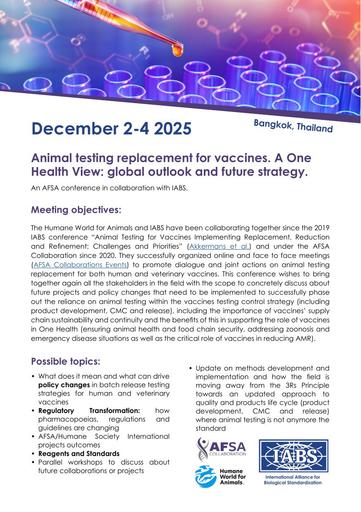 Folder AFSA – Animal testing replacement for vaccines: A One Health View: global outlook and future strategy