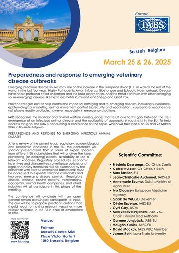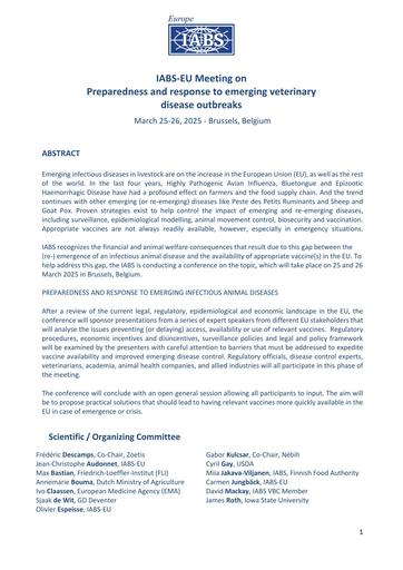 Folder IABS-EU Preparedness and Response to Emerging Veterinary Disease Outbreaks Meeting – March 23-25, 2025