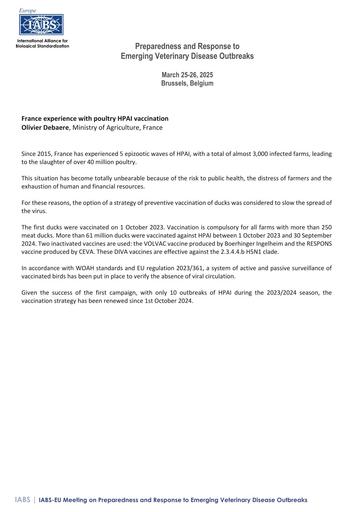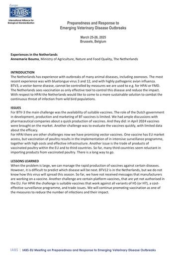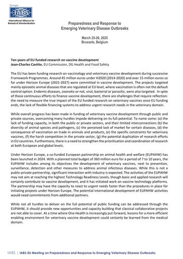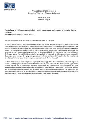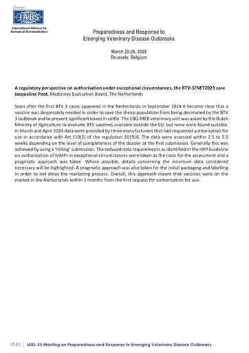 7. IABS-EU Preparedness and Response to Emerging Veterinary Disease Outbreaks Meeting – March 23-25, 2025